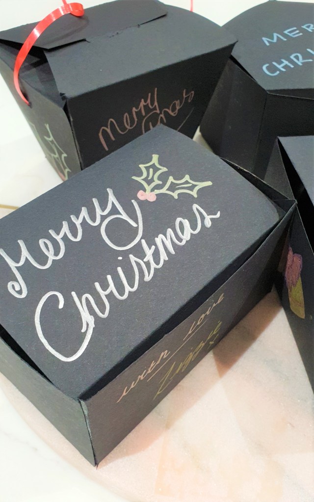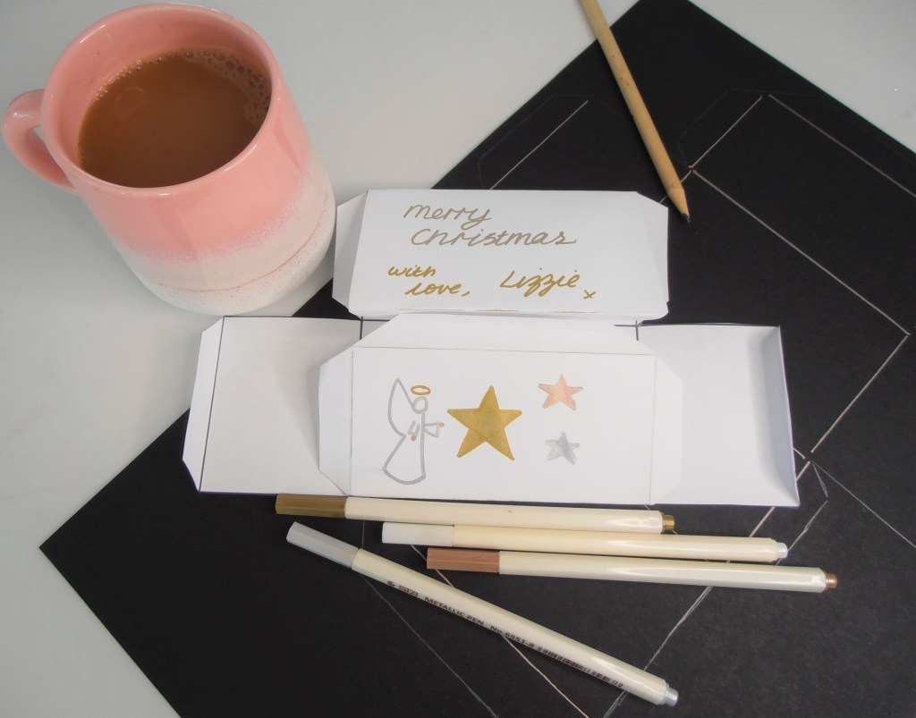 Find some stencils online, cut them out, trace onto card and cut out, assemble, decorate and fill with goodies! Keep any leftover bits to make your own gift tags