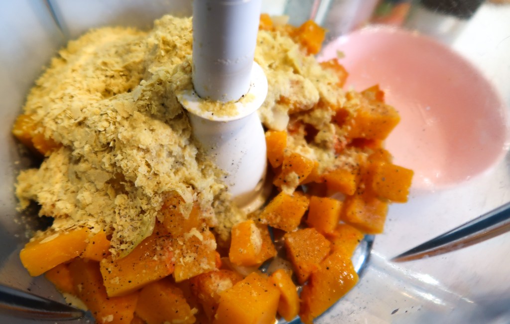 4 – Transfer the pan mix into a blender, along with the yeast and salt and pepper. Blitz to form a paste