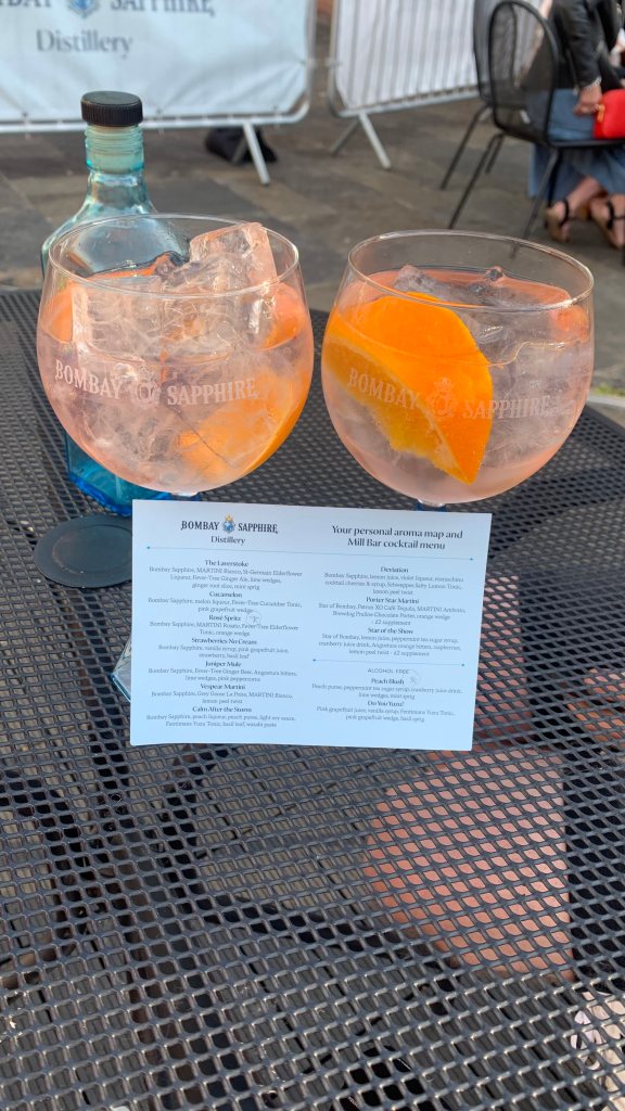 We were taken to the Botanical Dry Room, where I was enthralled by all the different ingredients, herbs and spices included in Bombay’s recipe. We sniffed various disks which helped us find out our flavour preferences with a cocktail menu recommending drinks best suited to our tastes. I was a blend of citrus and floral, but in the end opted for a Rosé spritz … WOW.