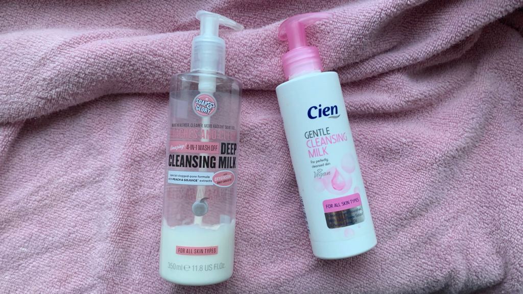 I thought now would be the time to do another review, this time between the Soap + Glory Peaches & Clean Deep Cleansing Milk and Lidl Cien Cleansing Milk.