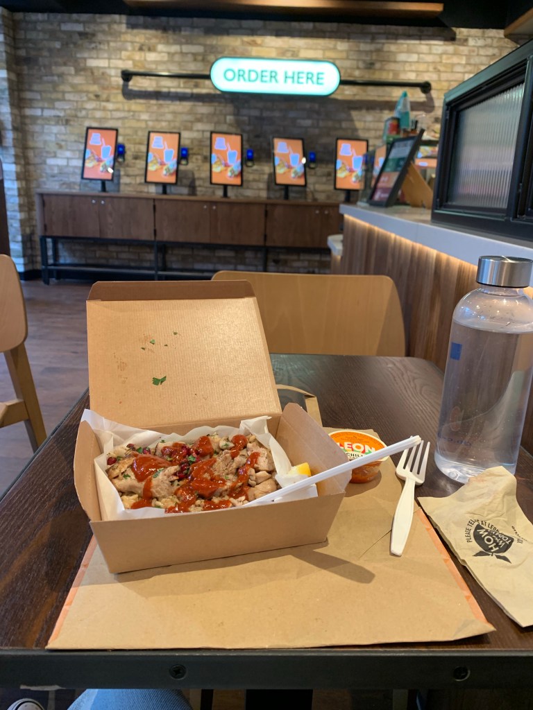 As the show was at a weird time and I hadn’t had lunch, I treated myself to a LEON on Regent’s Street (‘lunner’, if you like – lunch-dinner). The chilli chicken box – delicious!
