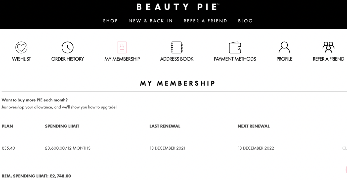 The site is very easy to use, where you can see a remaining balance to spend on your membership each time you make a purchase (see bottom left of the image).