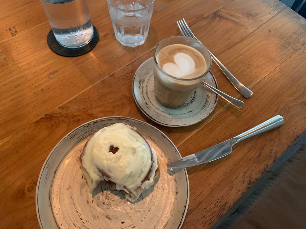 I made an early, quick stop at Nourish for a coffee and cinnamon scroll for breakfast – it was so big (the size of my fist) that I left half to eat the following day!