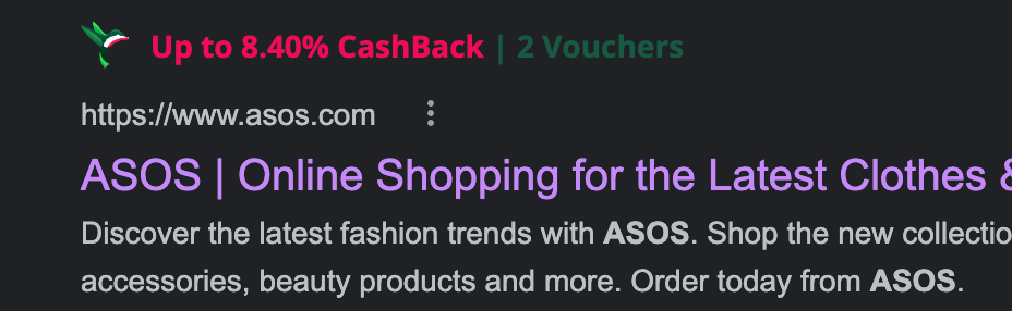 With TopCashback, it means installing a little extension into your browser, so when you type something in, it will come up with all the sites listed and the percentage of cashback they offer – it saves you a lot of time instead of having to search through the TopCashback site each time!