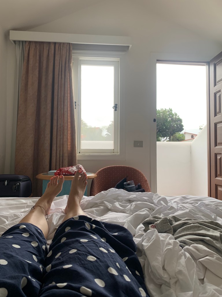 It turned out I was in a block of single rooms, where I opted for a balcony overlooking the pool. I took some comfort knowing there were others like me enjoying their own company on the island. The hotel is about a 15-minute walk from the beach, although it was quite rocky and black due to the volcano – which I could also see from the restaurant – but it’s then a slow, steep uphill walk back! The northern part of island wasn’t buzzing as much as the south, which I know is more popular (as I unexpectedly experienced later in my trip). Also, I extended my check out time until 3pm for €40 to save any waiting about during my last day.